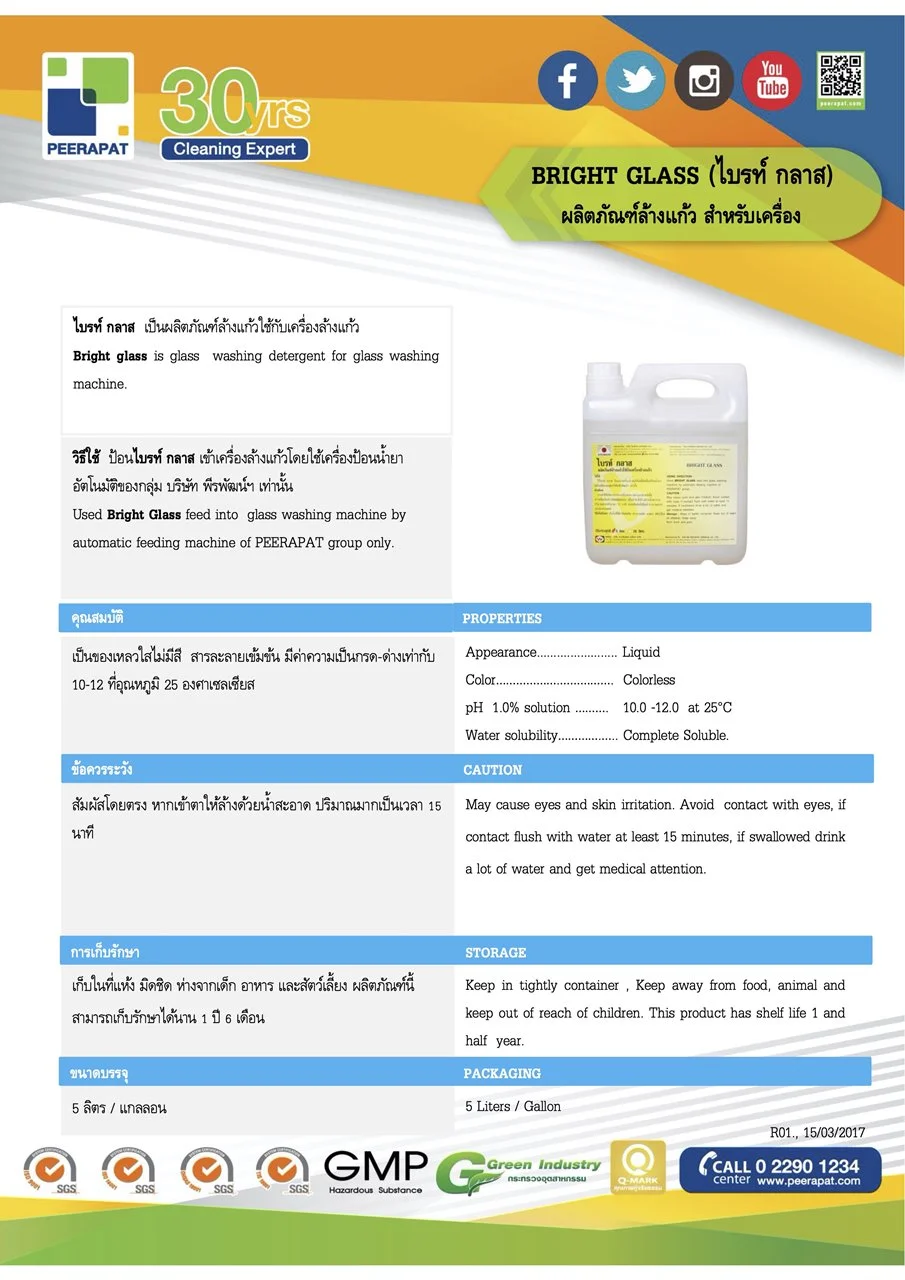 Bright Glass ผลิตภัณฑ์ล้างแก้วด้วยเครื่อง (5 lit-gallon)