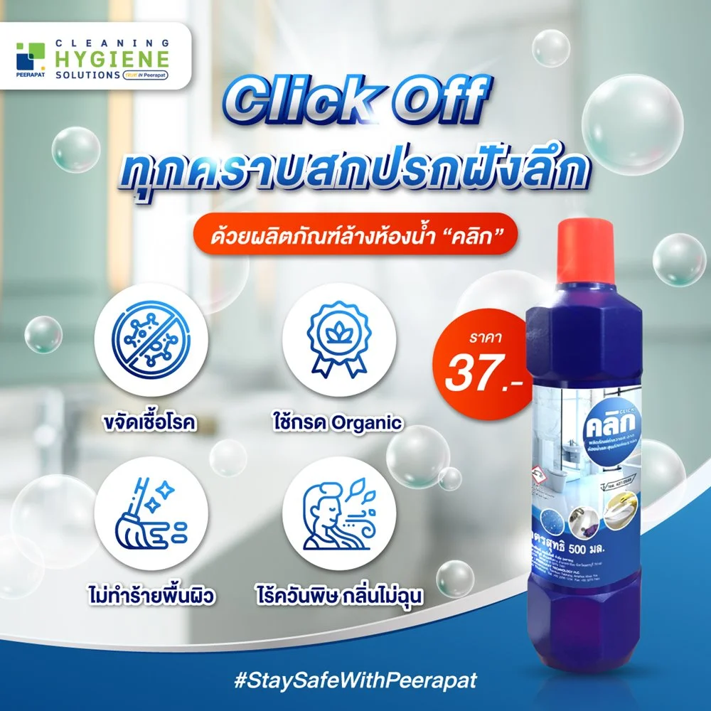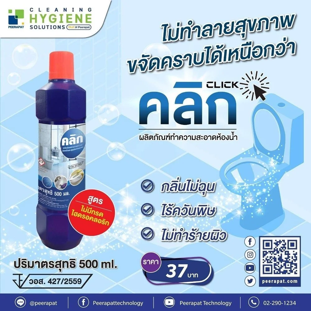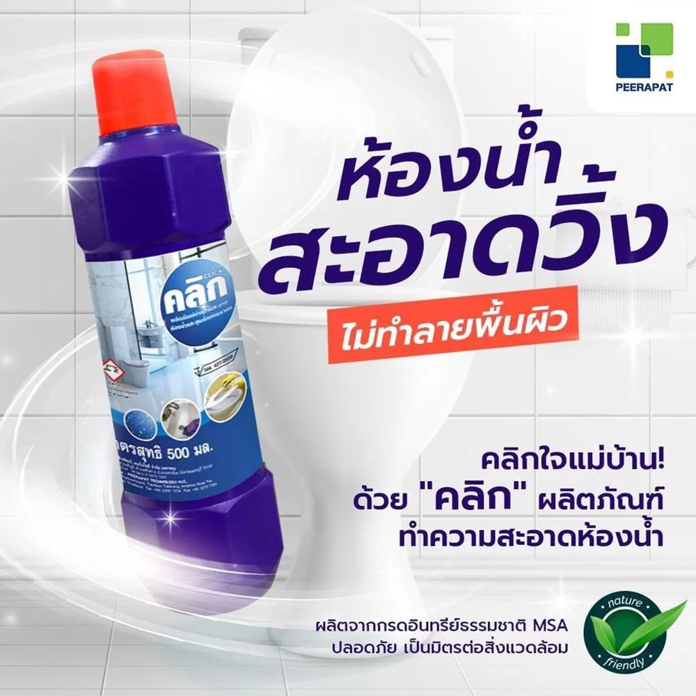 ผลิตภัณฑ์ทำความสะอาดห้องน้ำ Click ขนาด 500ml กลิ่นไม่ฉุน ไร้ควันพิษ ไม่ทำลายผิว