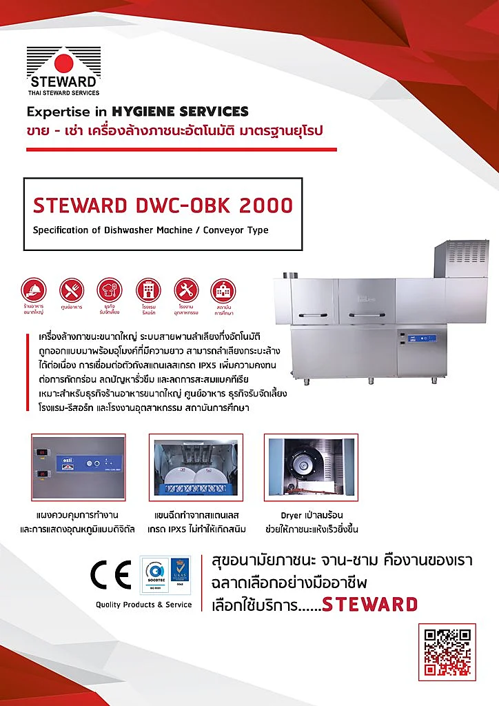 เครื่องล้างจาน DWC-OBK2000 (Conveyor Type)