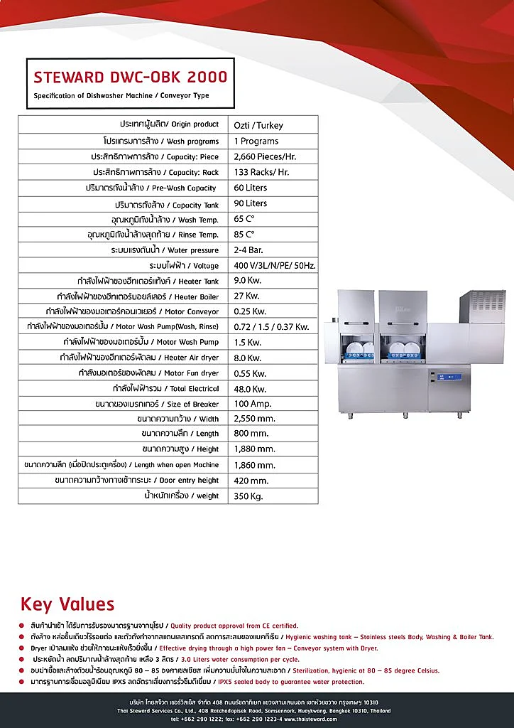 ประสิทธิภาพการล้าง 2,660 ใบ/ชั่วโมง นำเข้าจากประเทศตรุกี มาตราฐานยุโรป