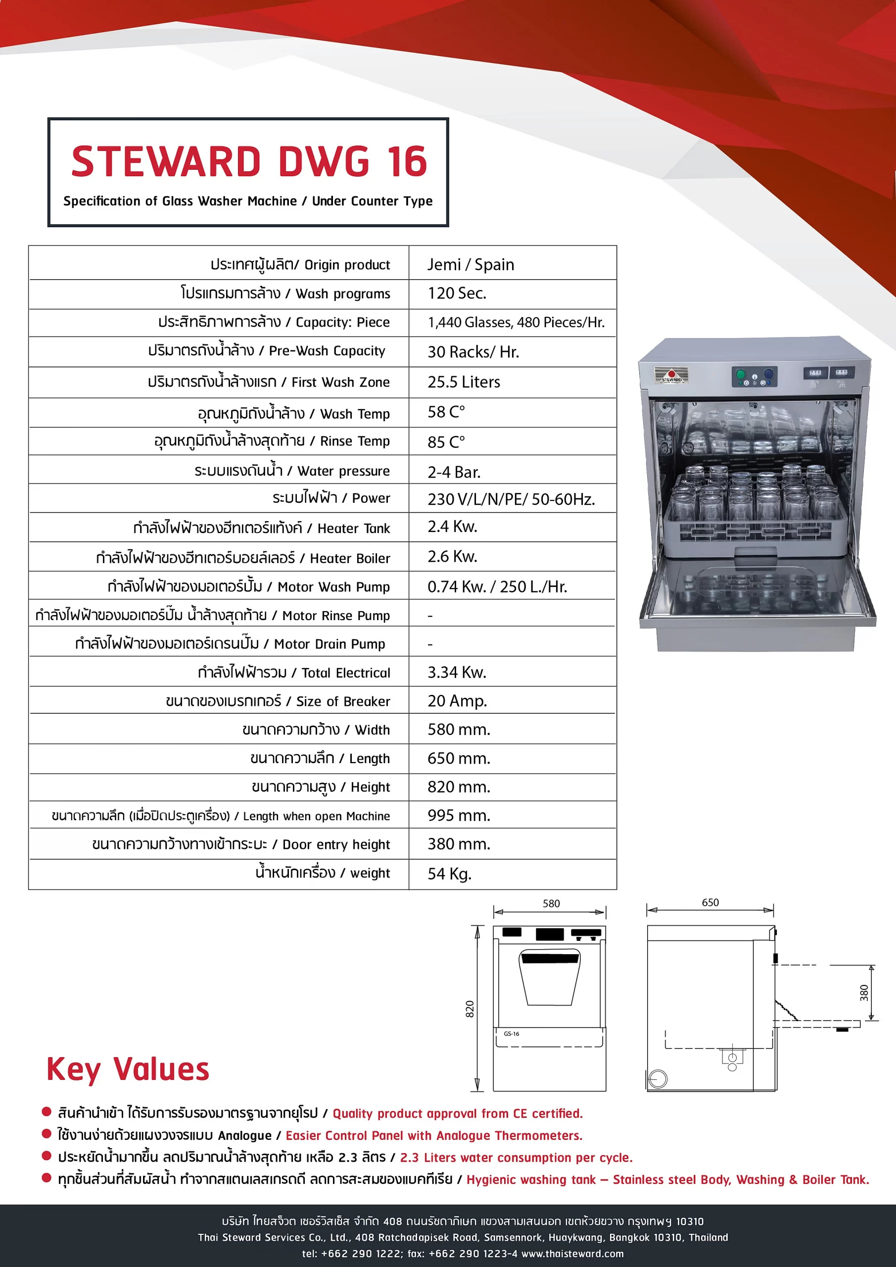 ประสิทธิภาพการล้าง 1,440 ใบ/ชั่วโมง นำเข้าจากประเทศ สเปน มาตราฐานยุโรป