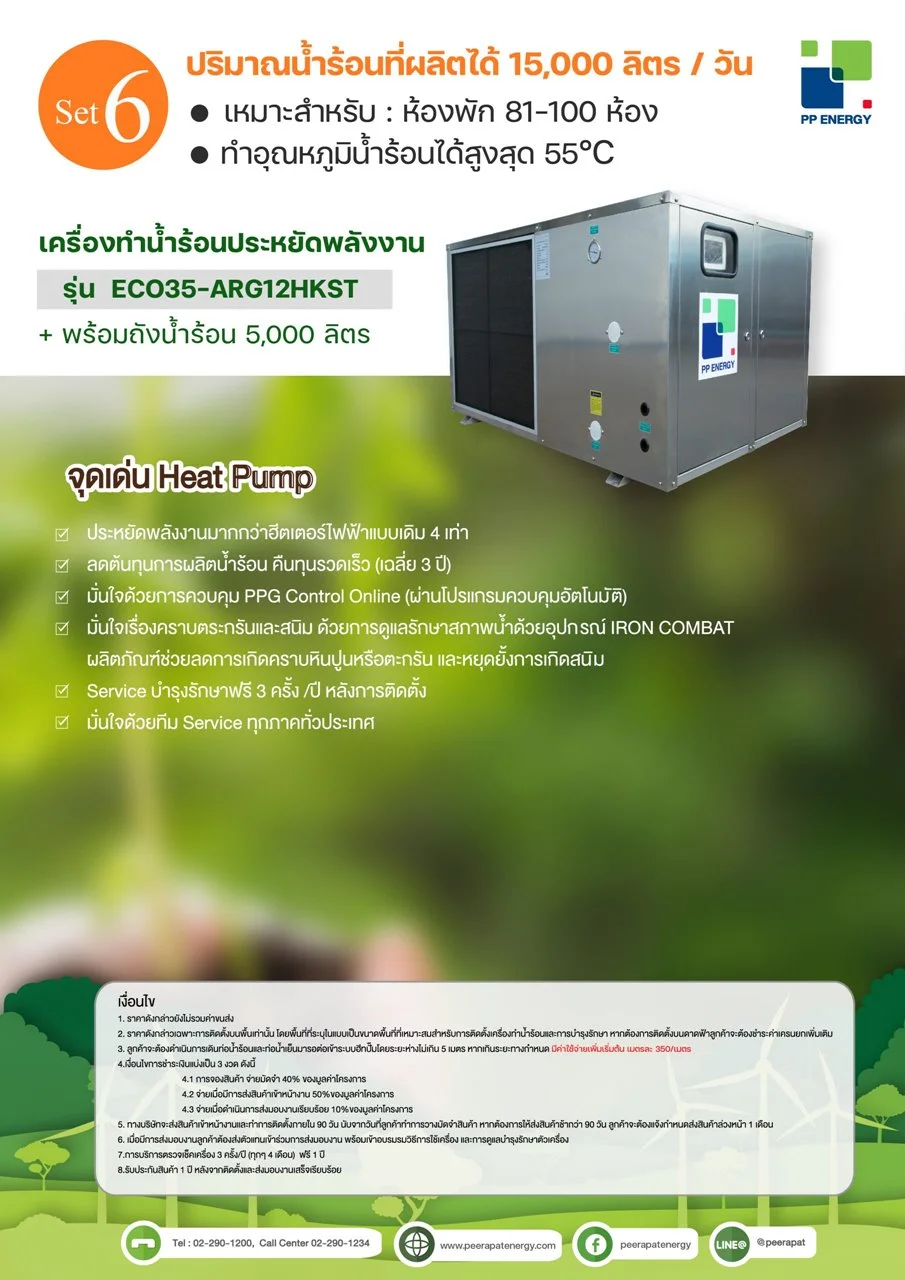 - ปริมาณน้ำร้อนที่ผลิตได้ 15,000 ลิตร/วัน