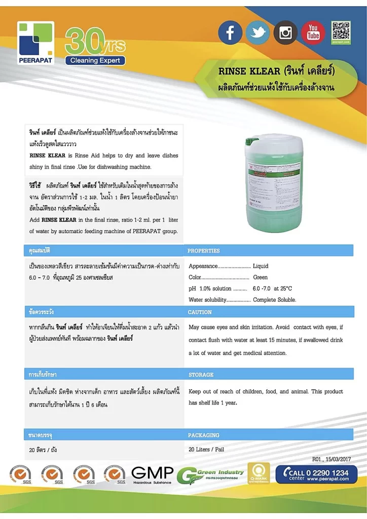 Be the first to review “Rinse Klear ผลิตภัณฑ์สำหรับช่วยแห้งภาชนะ (20 lit-pail)”