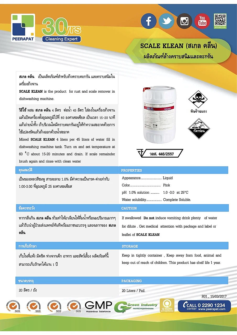 สเกล คลีน เป็นผลิตภัณฑ์สำหรับล้างคราบตะกรัน และคราบสนิมในเครื่องล้างจาน