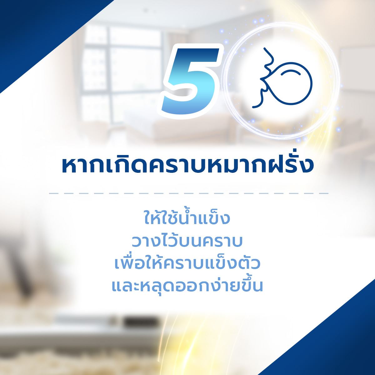 4. หากเกิดคราบหมากฝรั่งหรือคราบเหนียว ให้ใช้น้ำแข็งวางไว้บนคราบ เพื่อให้คราบแข็งตัวและหลุดออกง่ายขึ้น